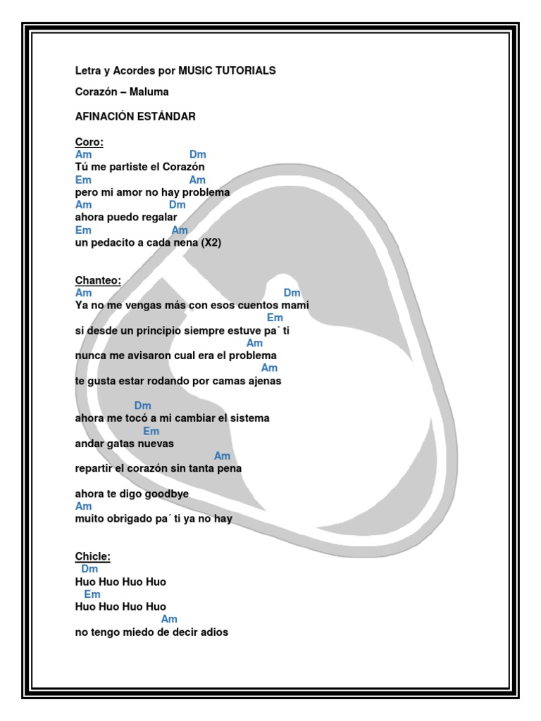 Añadir a favoritas guardar en playlist maluma corazon. Transcripción x javi29 para www.acordesdcanciones.com.