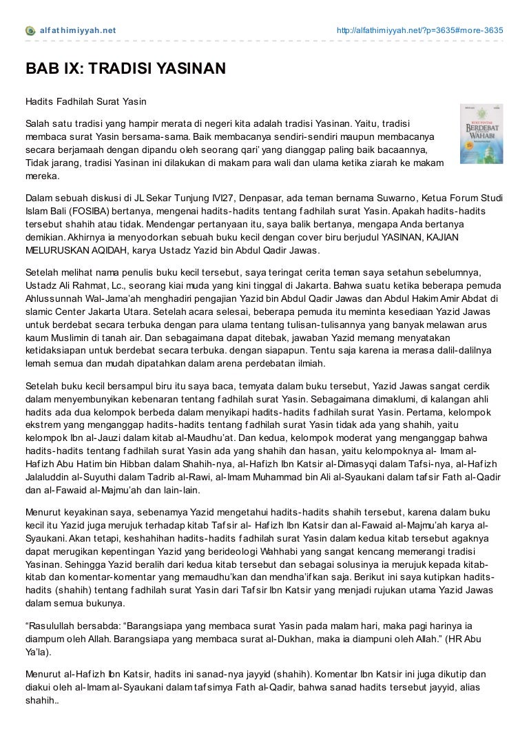 Hadits Shahih Tentang Surat Yasin - Malam Jum At Disunnahkan Baca Surat Al Kahfi Bukan Surat Yasin : Apakah membaca surat al kahfi ini harus selesai dalam sekali membaca?. Hadits tentang fadilah membaca yasin di malam hari akan diampuni pagi harinya apakah ada? Maka jelaslah bahwa sesama mukmin itu adalah saudara dan keluarga yang harusnya bersatu dan mempererat tali silaturahmi. Barang siapa yang membaca surat yasin di malam hari, maka pagi harinya dia diampuni.(hr. Dan ini hal biasa dalam dunia ilmu. Tirmidzi juga meriwayatkannya di juz 4 hal.